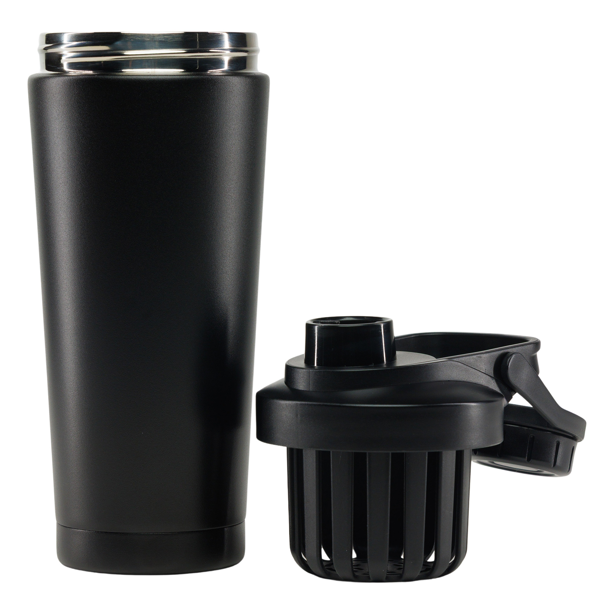 The Forge Steel Shaker combines unbreakable strength with smart design. Built from double-wall stainless steel, it keeps shakes ice-cold and coffee hot for hours. A built-in basket mixer ensures smooth, clump-free blends, while the twist-lock lid and carry handle add security and convenience. Rugged yet refined, this shaker is made to fuel every workout, commute, or adventure.